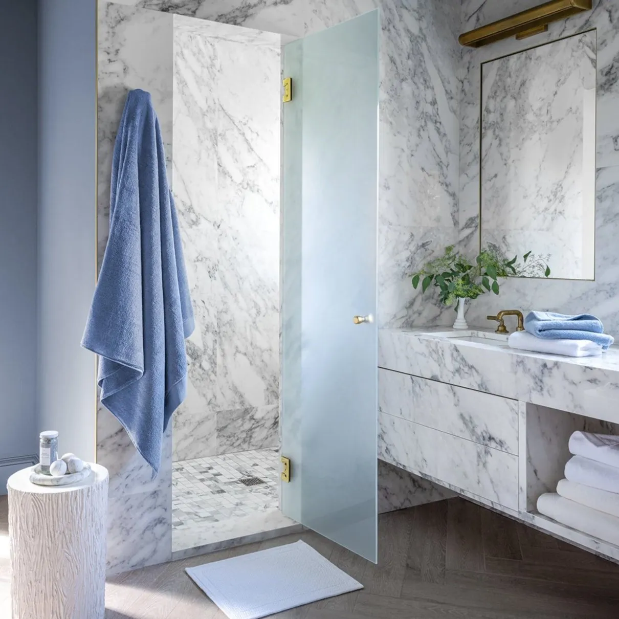 Ultra-plush with cloudlike softness and weight, Cosima is our essential for ultimate luxury in terry. Our cotton is fine combed to achieve an extraordinary lightness with absorbent texture, incredible height, and a silk-like feel. Made in Portugal, each bath rug is sewn with an intricate diamond-notch pattern, for exquisite texture underfoot. Offered in White, Ivory, Linen, Hydrangea, Marine, Alpine, Rosewater. Â